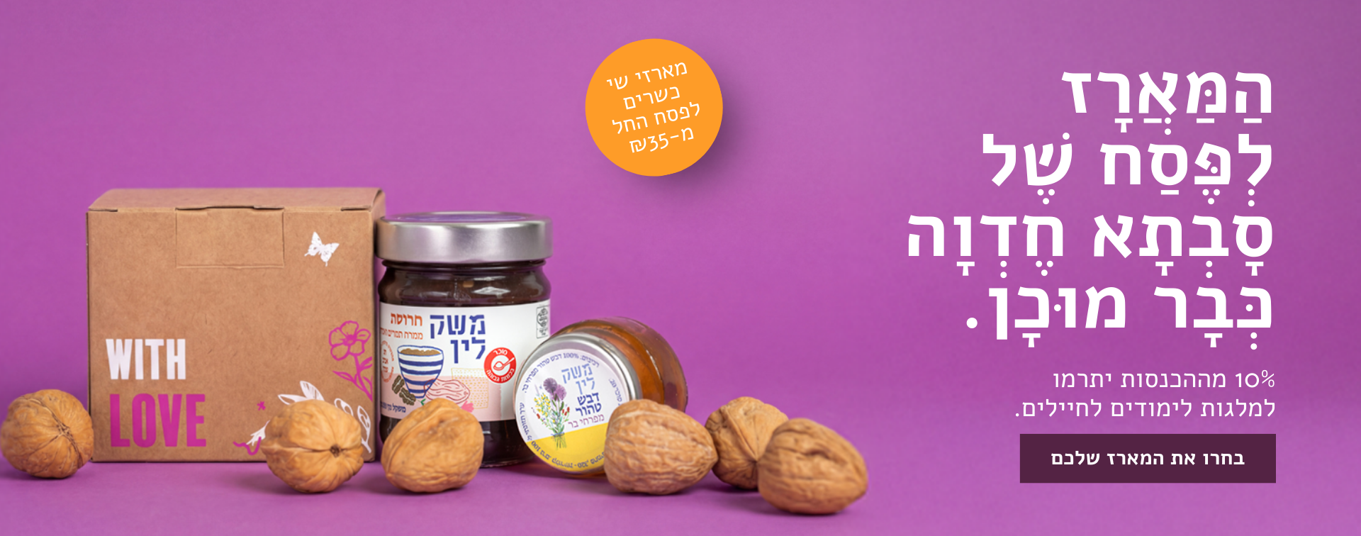 במשק לין, כל מארז שי מתחיל באהבה – לאדמה, לאנשים ולמה שחשוב באמת. אנחנו משלבים תוצרת מקומית, חומרי גלם מהטבע, עיצוב מוקפד ובעיקר – הרבה לב. מאחורי כל מתנה יש סיפור. של בית, של שורשים, של אנשים שעושים טוב.