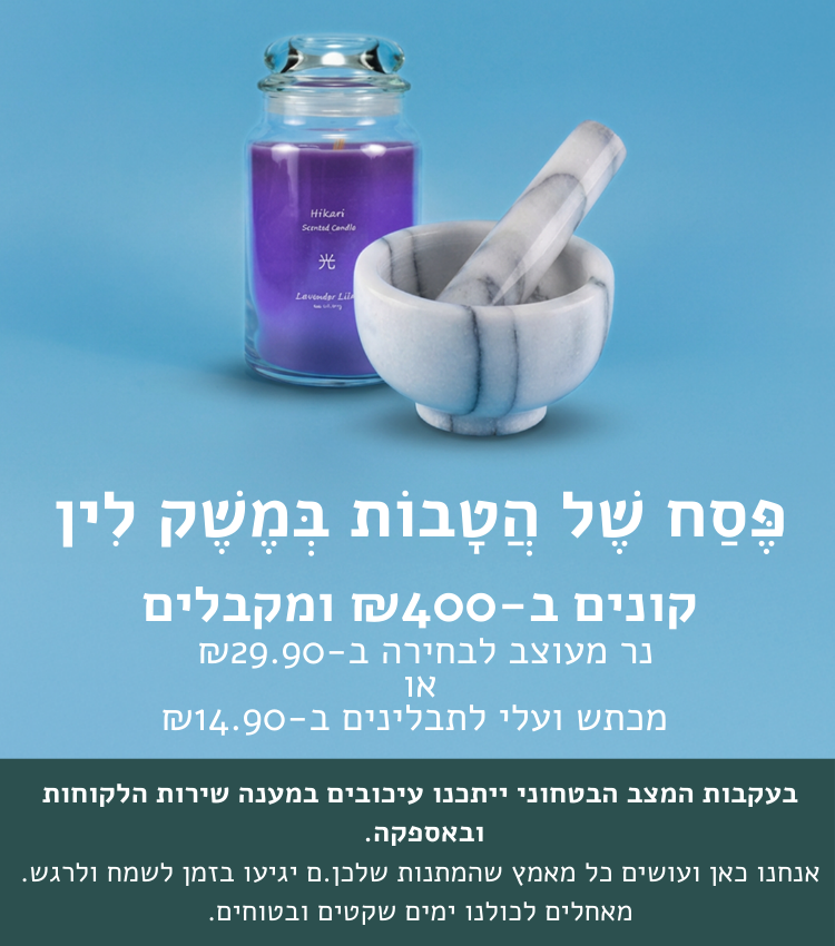 משלוח חינם בקנייה מעל 350 ש"ח לכתובת אחת 🚗
